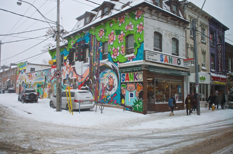 John couldn't resist taking winter shots out of the streetcar window on our way to Gladstone Avenue.