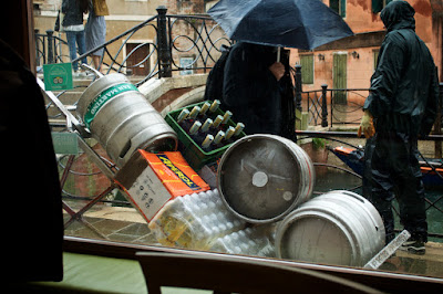 I watched the street traffic through the window. Everything in Venice arrives on a hand-drawn cart and must be delivered rain or shine.